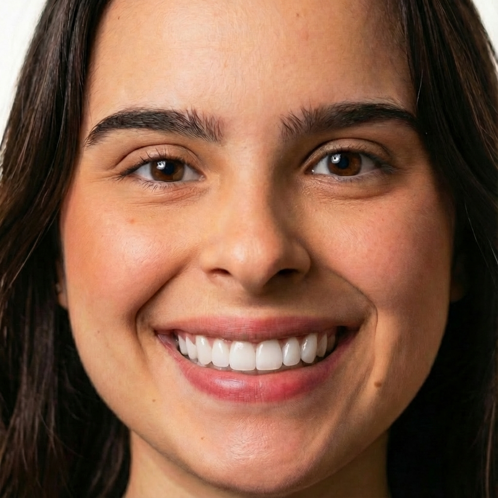 A square photo with a natural smile (mouth closed, teeth visible), good lighting, and a front-facing angle works best. Similar to the example in our hero section. Avoid shadows, filters, or exaggerated expressions.